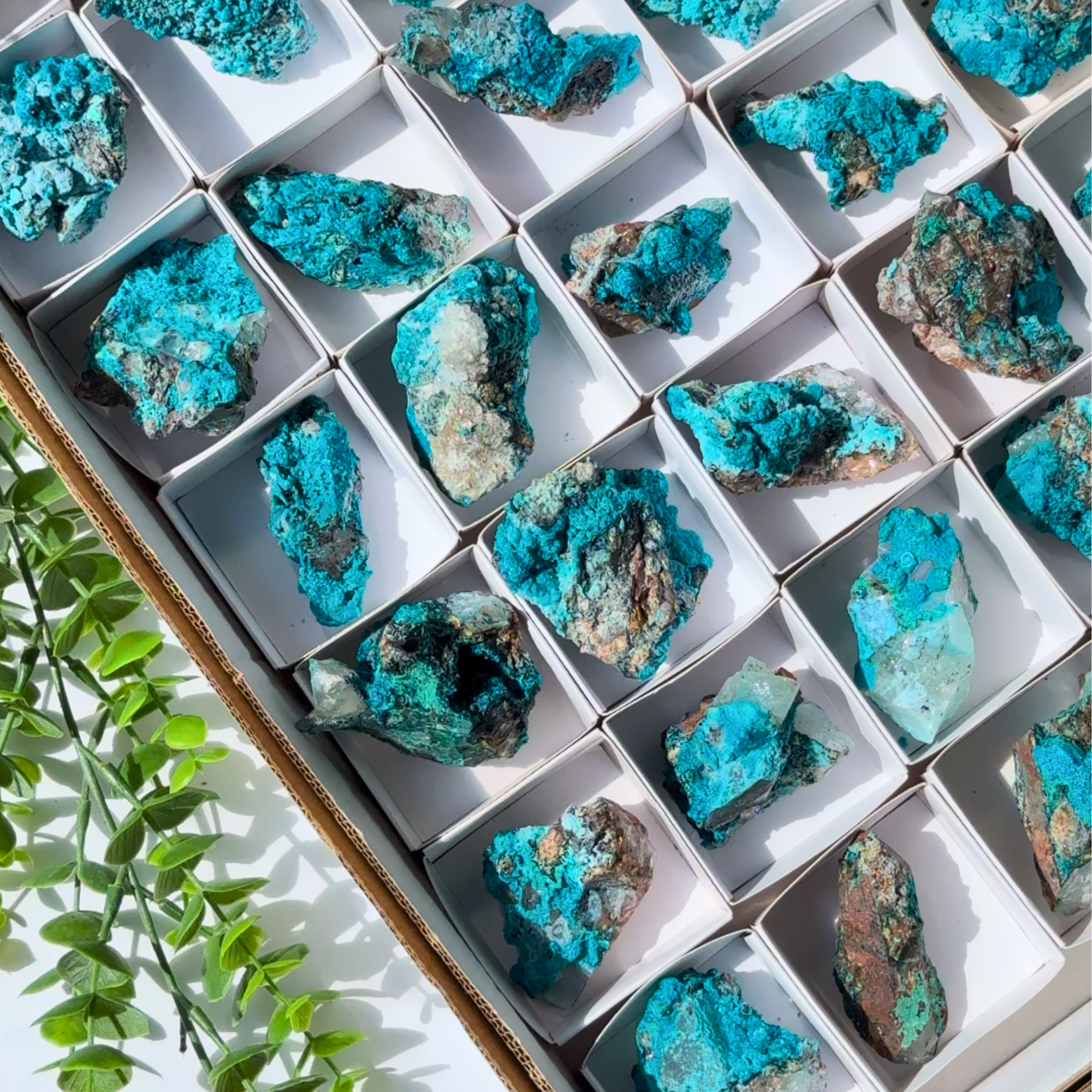 Chrysocolla on Quartz Clusters