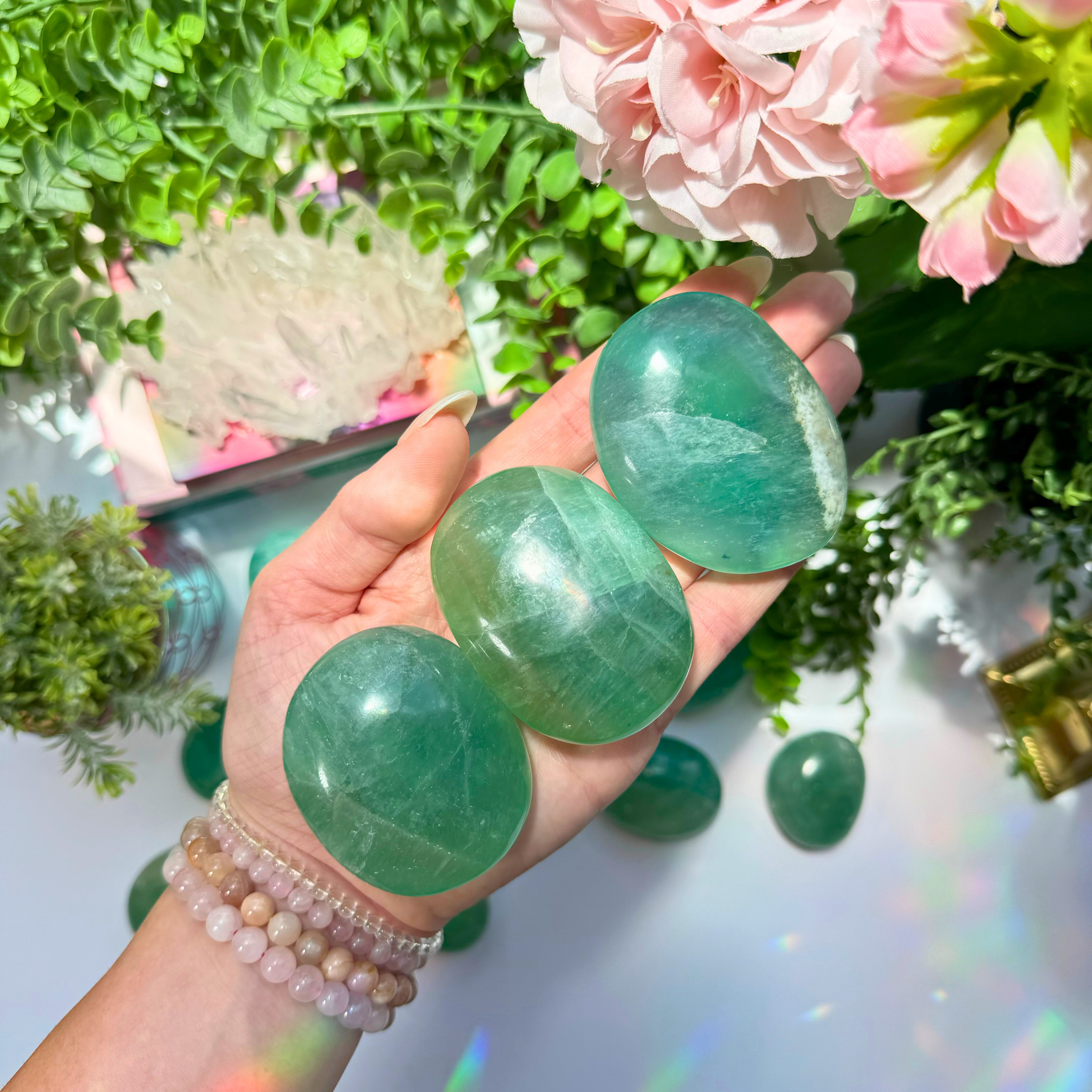 Green Fluorite Palm Stones