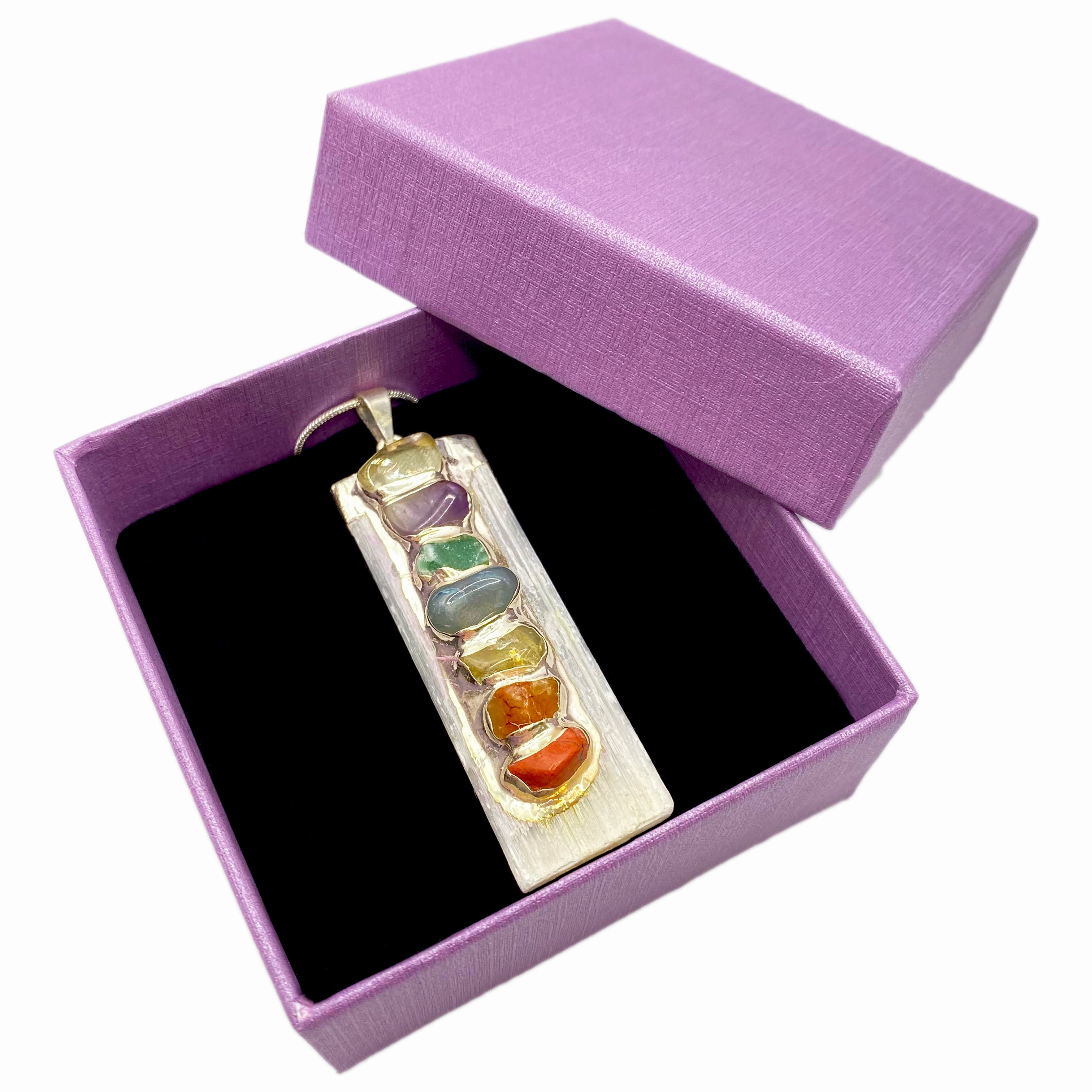 Selenite Chakra Crystal Necklace with Sterling Silver Chain